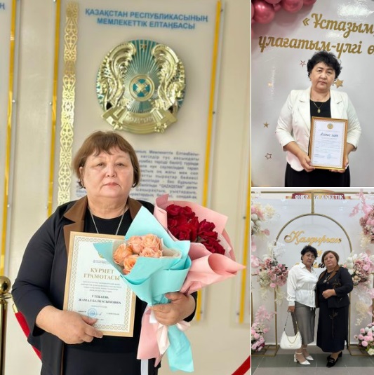 05.10.2024 жылы «Ұстаздық жол-ізгілік пен адалдық » атты облыстық мерекелік кеште тәуелсіз Қазақстанның рухани және әлеуметтік дамуы жолында қол жеткен табыстары және оның гүлденуіне қосқан зор үлесі үшін “Еңбек ардагері” төсбелгісімен мектебіміздің директоры Утебаева Жамал Балкасымовна және “Ыбырай Алтынсарин” төсбелгісімен қазақ тілі және әдебиет пәні мұғалімі Усенбаева Гулзипа Жумалбековна марапатталды.